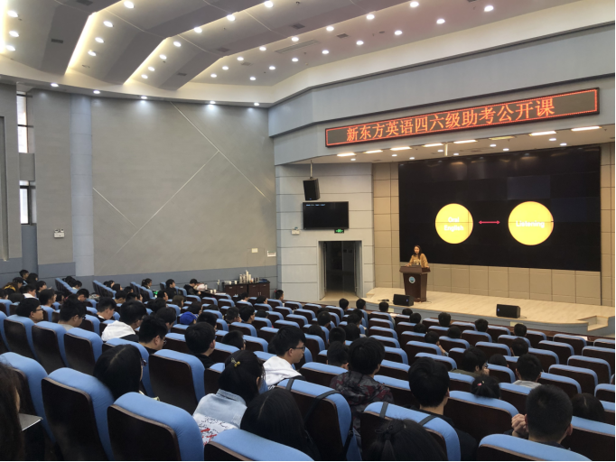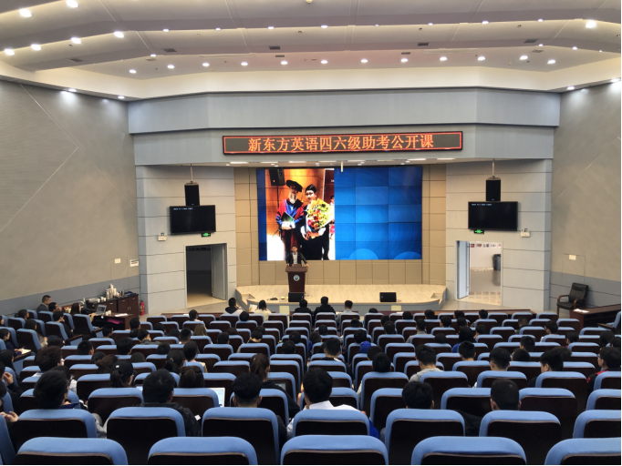 4月11日,新东方英语四、六级助考公开课在武汉校区石油科技大楼报告厅开展。主讲人是来自新东方的邹寅老师和Doris老师,地科全体大一学生和部分大二学生参加了本次课程。