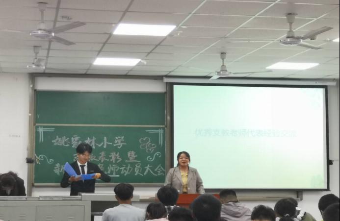 支教表彰暨支教动员大会在武教A-104举行,到会的有各优秀支教老师及新支教老师近百名。