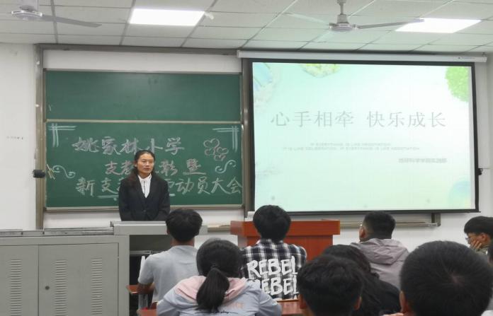 大会之初,首先由团委学生会实践部部长郑娜向我们介绍了姚家林小学支教活动概况。她谈到支教活动不仅使自身能力得到了提升,更让姚家林小学的孩子们受益匪浅,并从中获取温暖!在姚家林小学爱心支教活动举办的六年时间里,我校色情影片