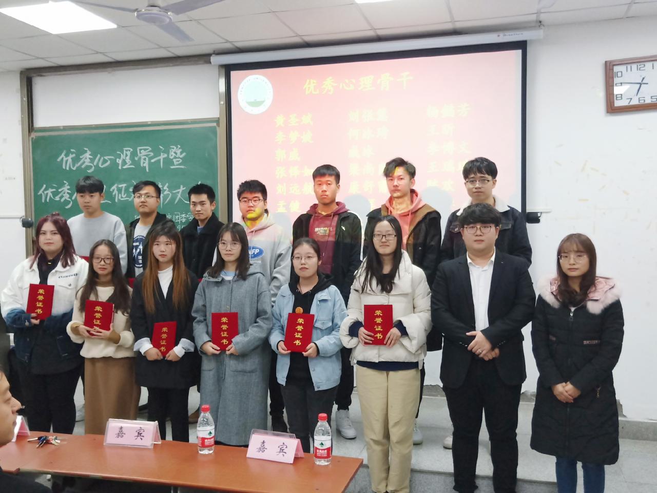 团委学生会心育部于A-103举办优秀心理骨干表彰暨“心声之路”征文表彰大会。地科院学工办副主任王宁、团委书记廖鹏程、辅导员罗小玉、兼职辅导员归航、院学生会副主席刘昊、刘佳琪、刘远航出席本次大会。