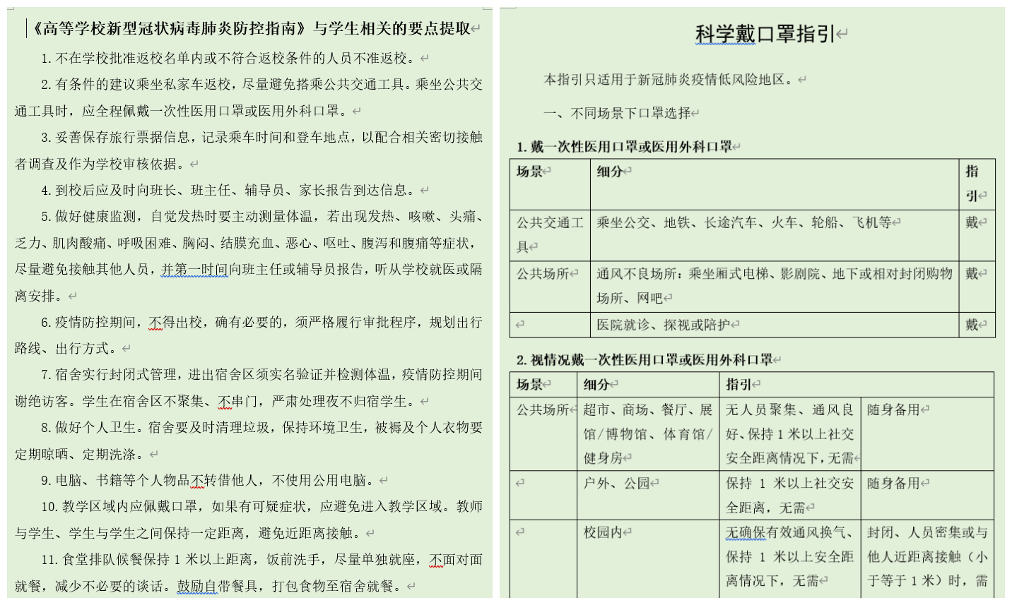 全体学生于5月27至31日学习了《公众科学戴口罩指引(修订版)》、《夏季空调运行管理与使用指引(修订版)》和《高等学校新型冠状病毒肺炎防控指南》三个疫情防控文件。为保证学习效果,学工办老师在认真研读文件的基础上,根据将来学生复学返校可能面临的防控重难点,结合学院学生具体情况,对文件内容进行了梳理与提炼,整理出相关学习要点,由年级辅导员具体负责组织学生学习。