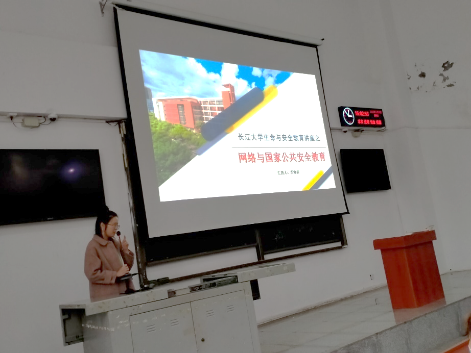 随后,艺传学院李婉书老师给同学们进行了网络与国家公共安全教育,并用常见的网络骗局案例,警醒同学们不要上当受骗,希望同学们能够加强戒备心,不要相信“天下掉馅饼”的诱惑。