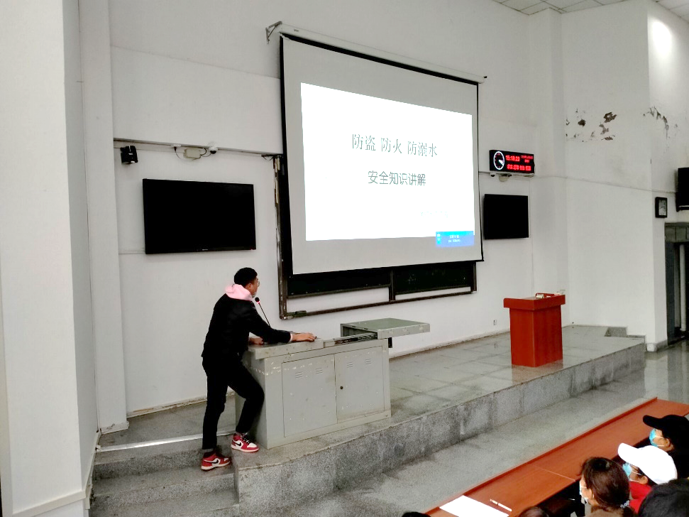 地物学院荆鑫老师通过幽默风趣的语言给同学上了一堂生动的“防盗、防火、防溺水”的安全教育课。他通过列举火灾、盗窃和溺水的相关真实案例,让现场学生了解到可能引发事故的各种情况,同时还就如何处理和应对安全事故进行了详细讲解。