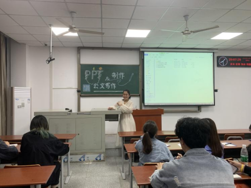 本次例会主题是“PPT的制作与公文的写作”。首先,郑娜主席为大家讲解如何写好公文,并向院会成员详细介绍了策划书以及工作总结的写作步骤和内容分布。