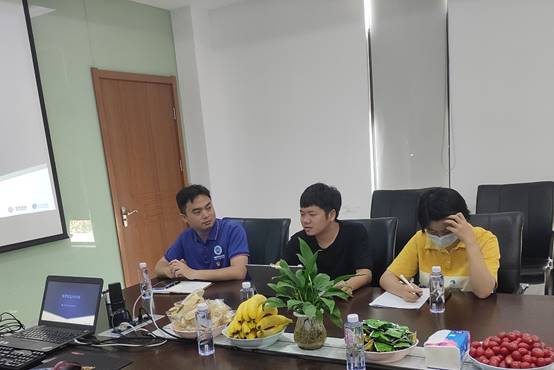 招聘经理骆封浩首先带领学生代表们参观了公司的办公环境。进入公司里面,映入眼帘的是清新的绿色。一个个绿色的办公桌隔板让人在炎炎夏日里感受到了一丝清凉,一盆盆统一摆放在办公桌上面的绿色植物让人看着生机勃勃。在这里工作的员工们都在专注地做着自己的工作,鼠标和键盘敲击声接连不断。
