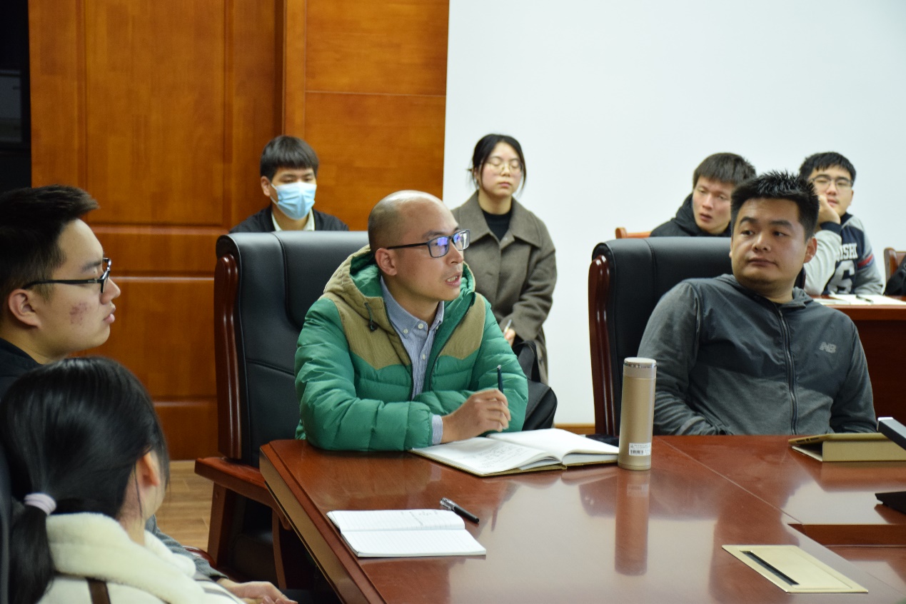 副教授胡忠贵老师、副教授邵燕林老师和团委书记郭霖老师出席,研究生会宣传部副部长古楠玲主持,部分研究生参加。