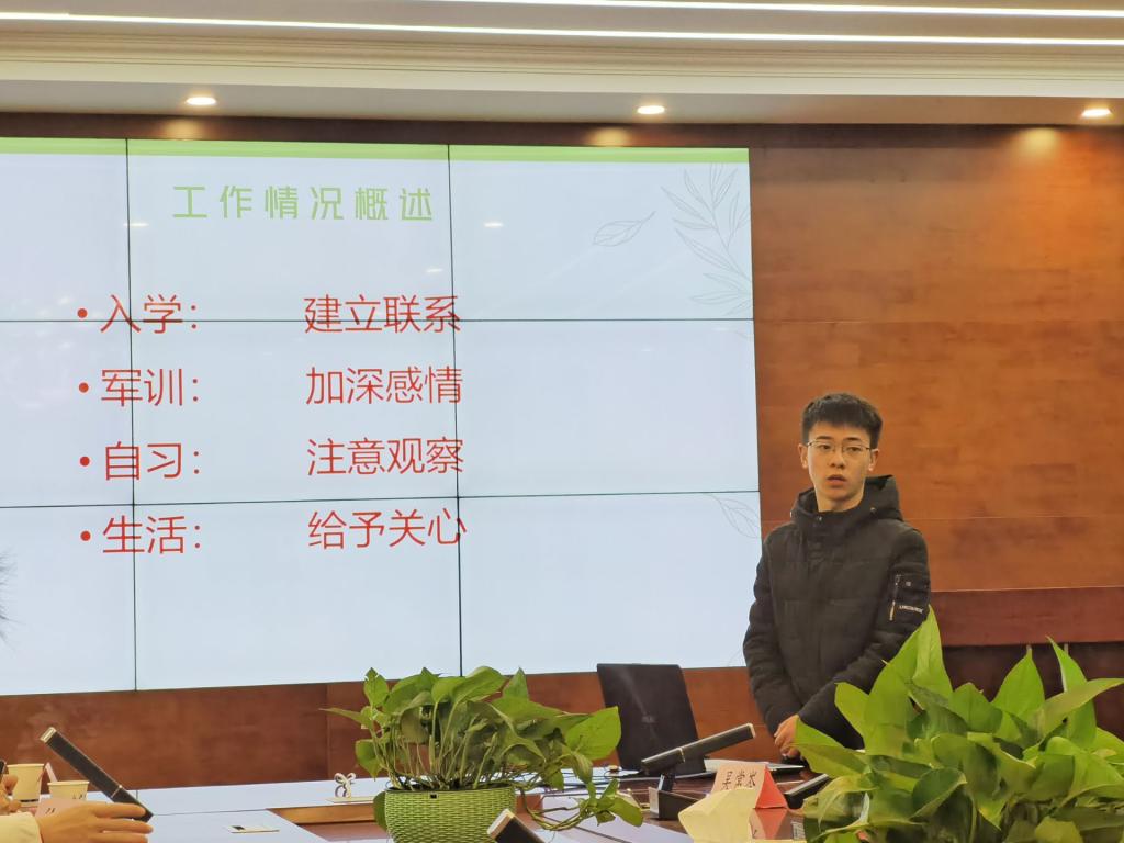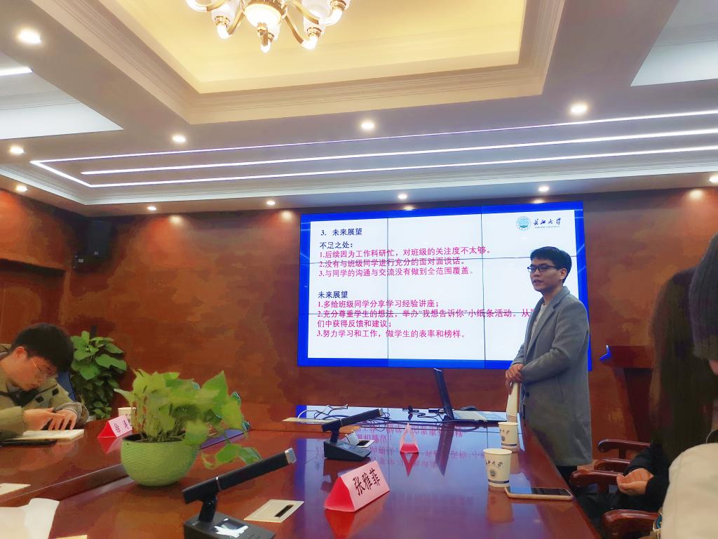 在简短的自我介绍后,地物学院三位嘉宾分别分享自己带班的经验体会,讲述了送诊发热学生、找高年级新疆籍学生帮助新生老乡更好的适应本地气候等问题的事例,及对“班导、班委配合”等方面的思考。随后色情影片