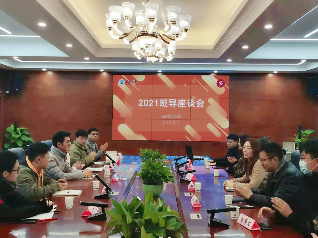 2021级9个新生班级全体班导。活动特邀地球物理与石油资源学院班导代表芦杨笛、吴常岑、张雅菲参会交流,由王老师任主持。
