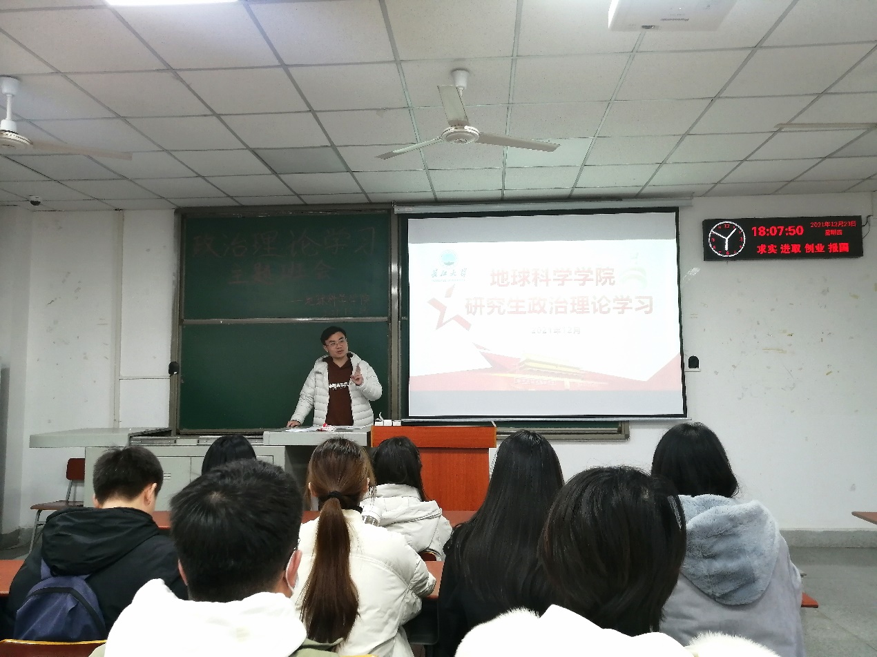 学工办兼职辅导员梁博主讲,研究生会主席陈剑峰主持,全体研究生参加。