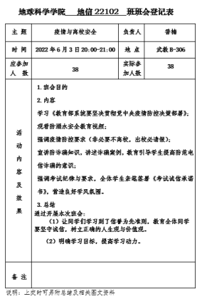 以班级为单位,充分发挥年级辅导员、班主任在安全教育中的引领作用,通过主题班会等形式,广泛开展学生疫情防控教育与安全教育班会,从严从紧、落实落细学校对于疫情防控、毕业生安全离校、防溺水、学生四六级以及诚信教育等相关工作要求,全力守护校园安全稳定。