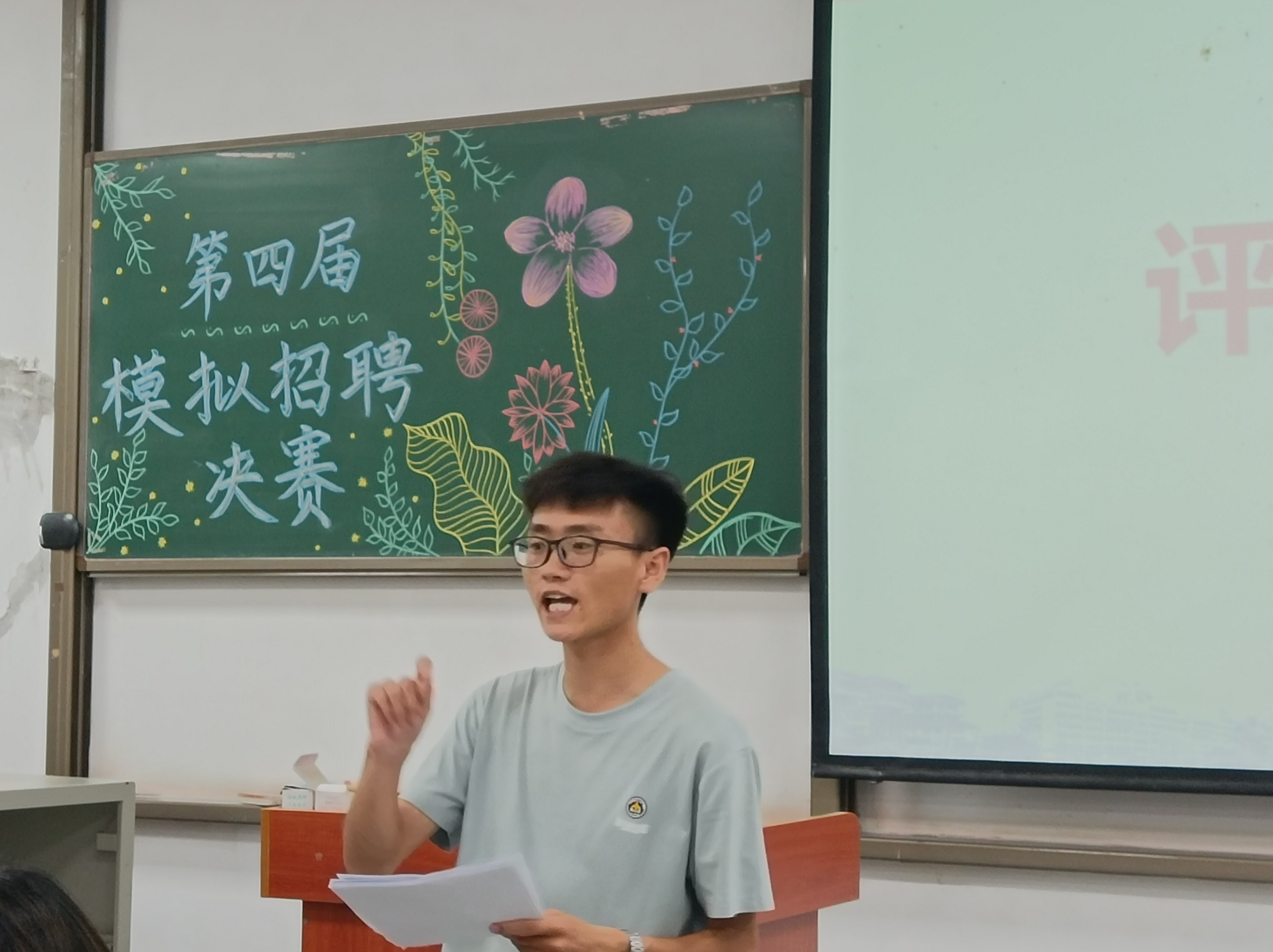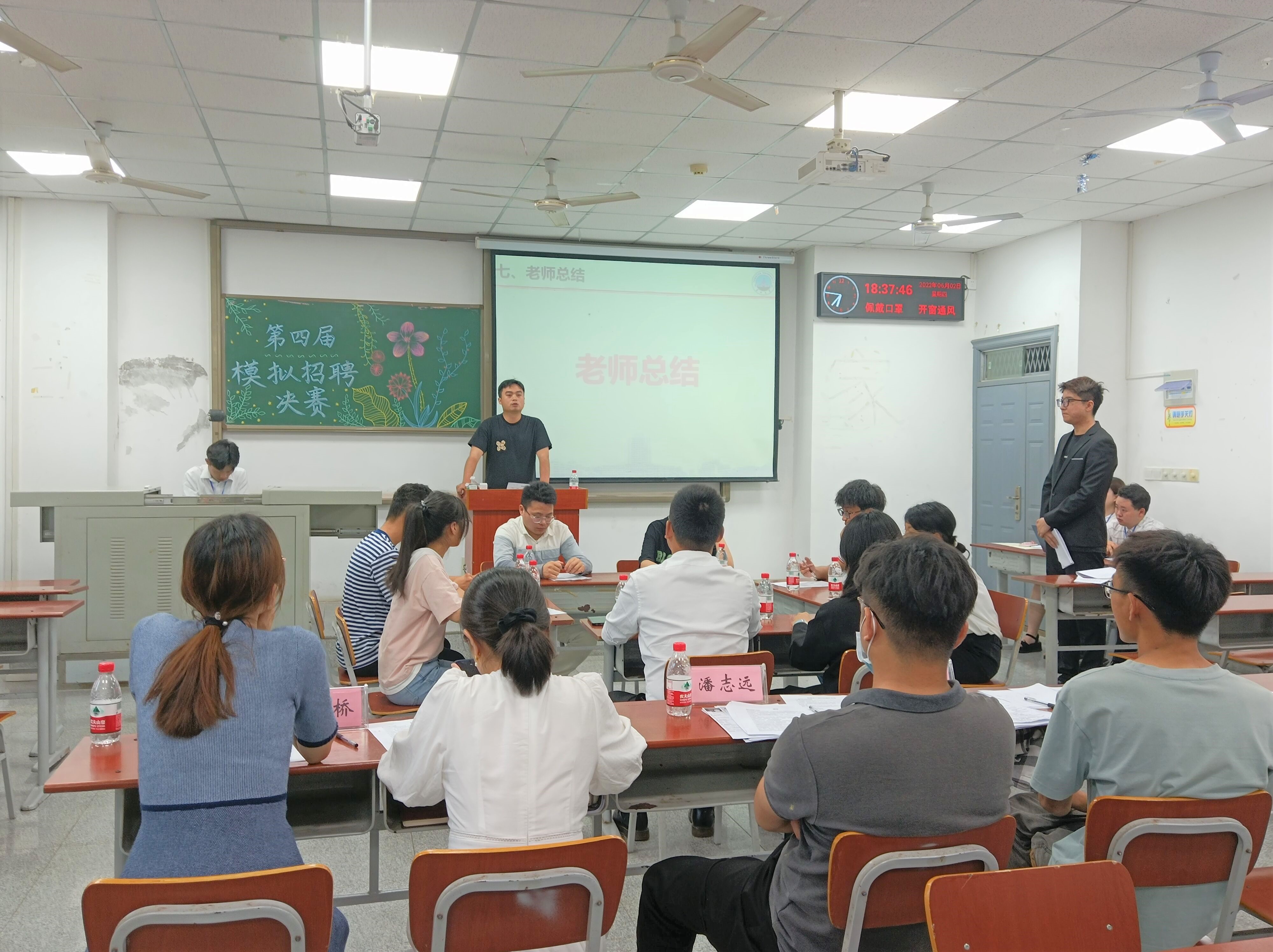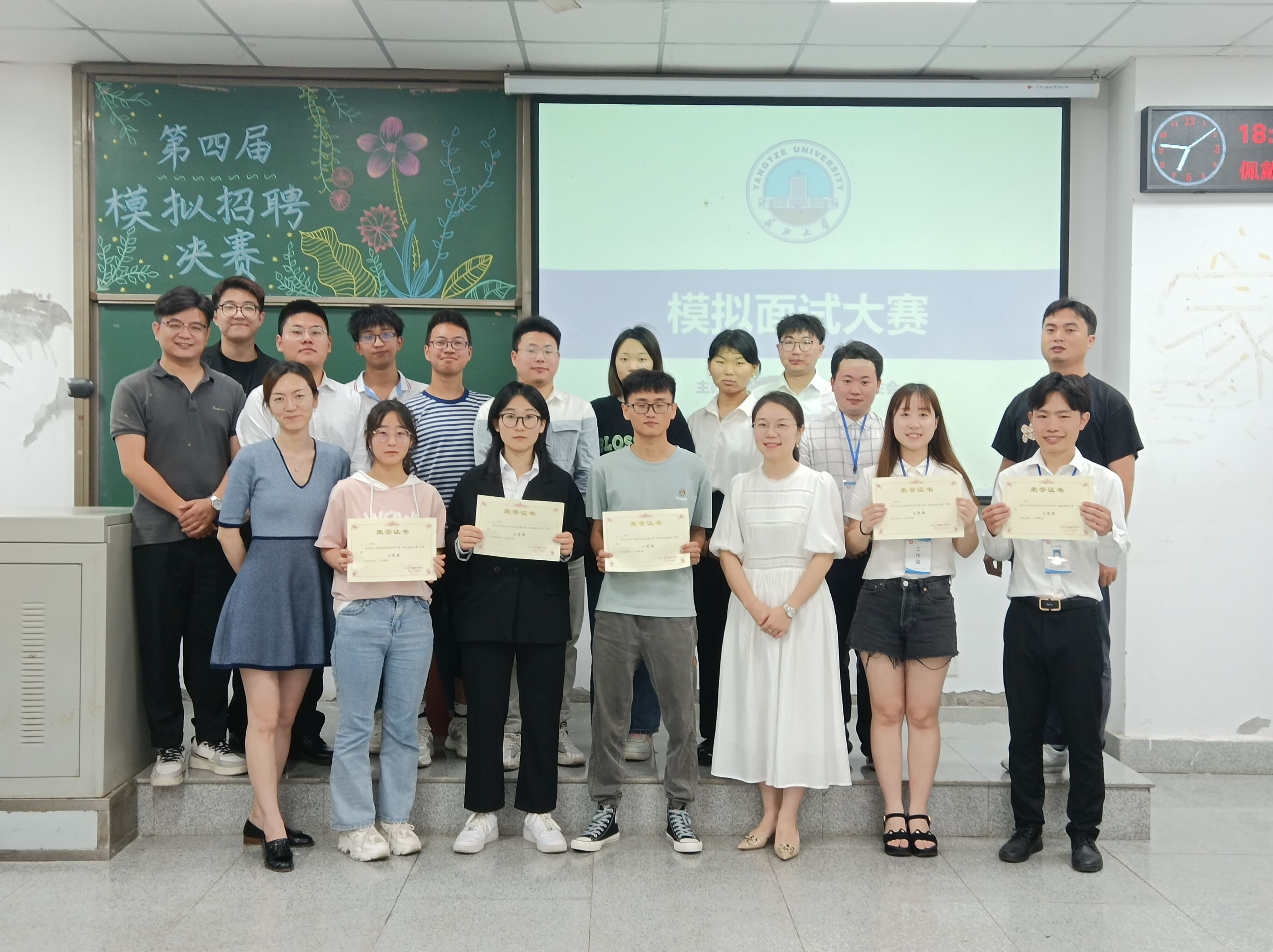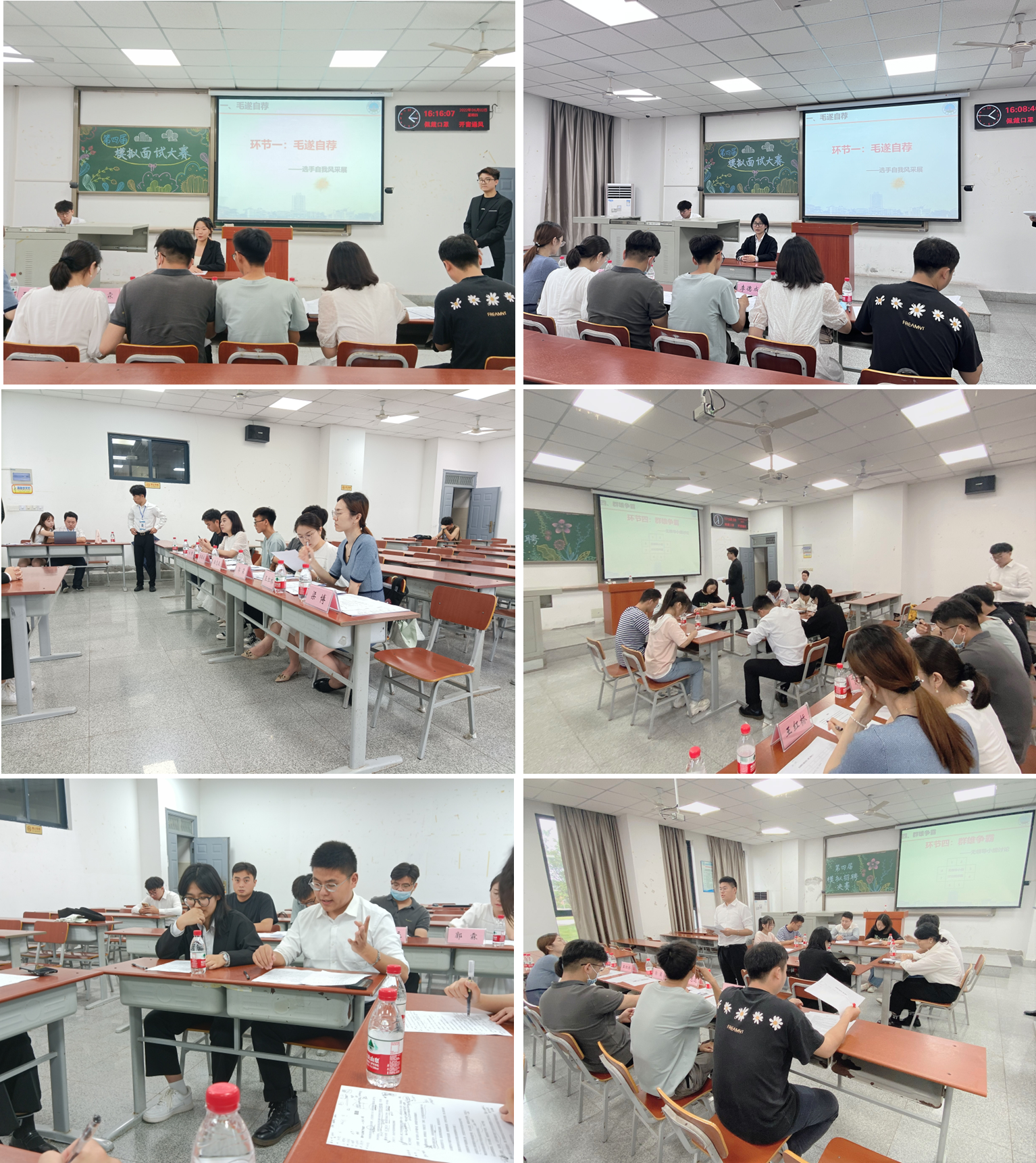 于武教A-106举办第四届模拟面试大赛。学院党委副书记任倩,第七届“长江学子”获得者李德成,辅导员王红桥、郭霖、潘志远、张严担任面试评委。