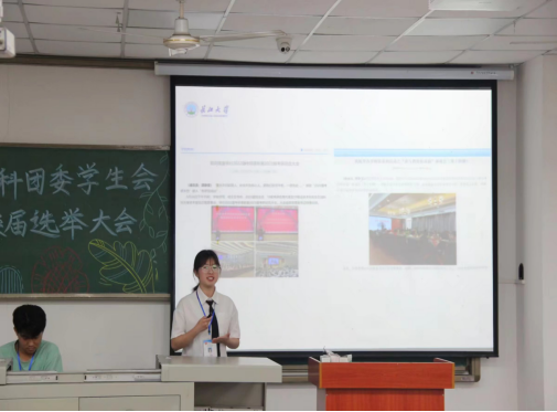 于武教B105教室召开了院团委学生会第十一届换届选举大会。院党委副书记任倩老师、学工办主任王红桥老师、团委书记郭霖老师、潘志远老师及学生会全体成员参会。