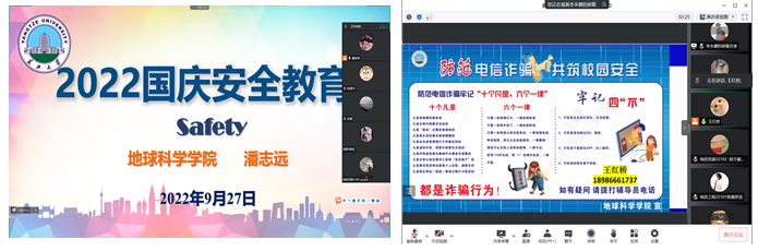 于9月27日通过线下及线上相结合的方式在全院学生中召开“安全庆国庆、喜迎党的二十大”校园安全主题班会。