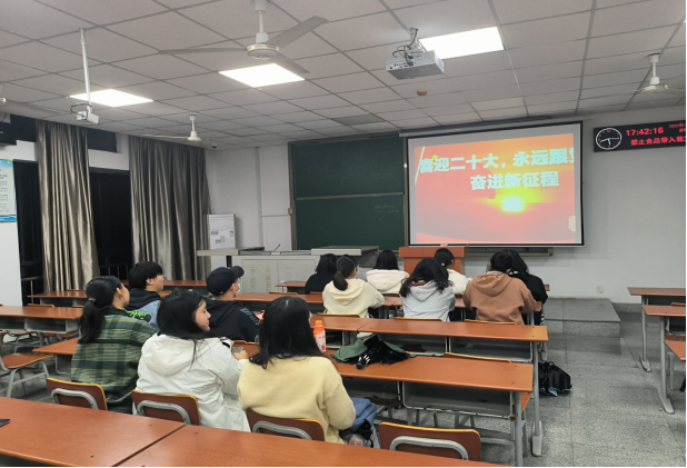 主讲人魏金冉同学带领全班集中开展“学习二十大 启航新征程”主题团会,进行党的学习教育,整个过程同学们认真学习党的二十大精神和延安精神,并在会议结束后进行了讨论和感悟分享。