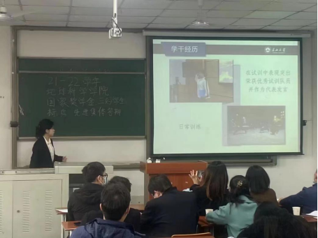 于10月10日下午3时在武教A104召开了2021-2022学年国家奖学金暨三好学生标兵、优秀班集体答辩会。党委副书记任倩、班主任代表吕奇奇、赵仲祥、相龙伟、尚成、教学办马丽以及学工办全体辅导员老师参加了会议。各年级学生代表观摩了本次答辩会。