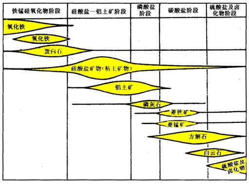 一般来说机械沉积分异作用与化学沉积分异作用,这是自然界中两种并存的沉积分异作用。一般说来,机械沉积分异作用进行得较早,化学沉积分异作用进行较晚,机械沉积分异作用的砂和粉砂阶段,大致与铁的氧化物阶段即化学沉积分异作用的开始阶段相当,械机沉积分异作用的最后阶段即粘土沉积阶段,大致与化学沉积分异作用的碳酸盐阶段相当,待化学沉积分异作用进行到硫酸盐及卤化物阶段时,械机沉积分异作用已基本结束了,故蒸发岩中很少有碎屑混入物。