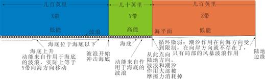 ①从波浪开始冲击海底的地点开始,向滨岸方向延伸,直到波浪和潮汐的能量大部分被消耗掉为止。因此这一带为一高能带。