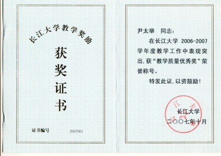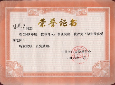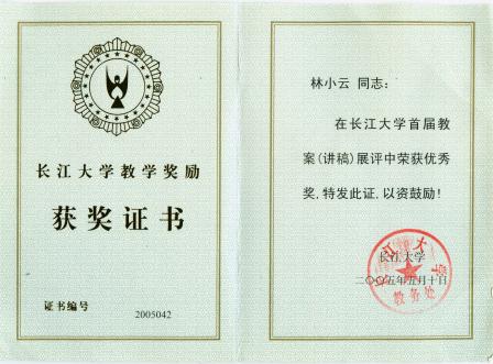 首届“师德十佳个人提名奖”,曾获江汉石油学院第五届青年教师讲课比赛二等奖,所指导的资工981班考研上线率达76.4%,2008年获湖北省教育系统先进女教职工。课程组成员2005年度被授予色情影片