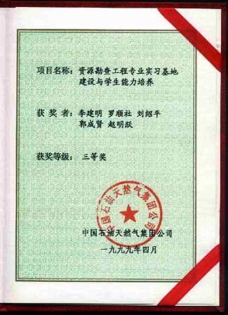 1999年度中国石油天然气集团公司教学成果三等奖;1998年度江汉石油学院教学成果一等奖。 |